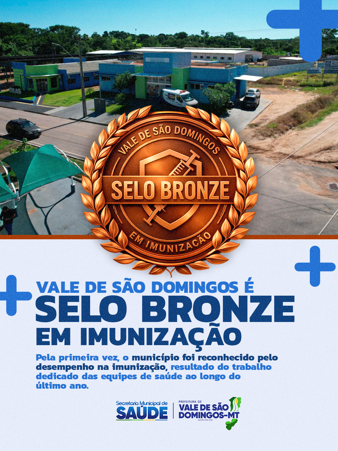Pela primeira vez, o município de Vale de São Domingos foi reconhecido com o Selo Bronze no programa Imuniza Mais MT, uma importante iniciativa do Governo de Mato Grosso que avalia e premia o desempenho dos municípios na área de imunização. Com a conquista, o município recebe um prêmio de R$ 50 mil, que será revertido para o fortalecimento das ações de saúde 🏆💉.